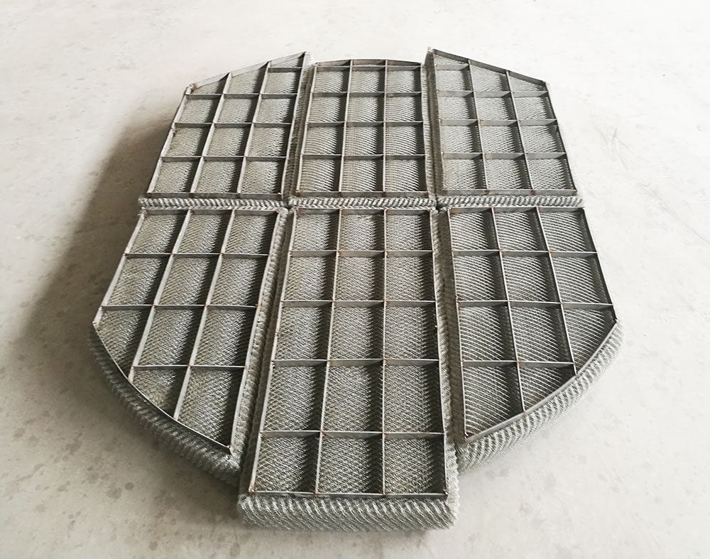 抽屜式絲網(wǎng)除沫器有下列優(yōu)點(diǎn):維修時(shí)維修人員不必進(jìn)入塔體內(nèi)部,避免了在惡劣條件下工作,只需將抽屜式絲網(wǎng)除沫器元件沿著導(dǎo)軌分塊抽出,在平臺(tái)上進(jìn)行清洗、修理或更換除沫器配件即可。達(dá)到了方便快捷的效果,維修人員的安全也可得到保障。