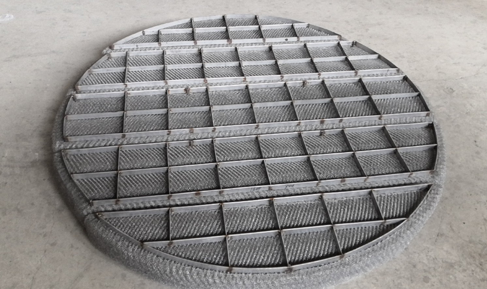 絲網(wǎng)除沫器主要是由絲網(wǎng)、絲網(wǎng)格柵組成絲網(wǎng)塊和固定絲網(wǎng)塊的支承裝置構(gòu)成,絲網(wǎng)為各種材質(zhì)的氣液過濾網(wǎng),氣液過濾網(wǎng)是由金屬絲或非金屬絲組成。氣液過濾網(wǎng)的非金屬絲由多股非金屬纖維捻制而成,亦可為單股非金屬絲。該絲網(wǎng)除沫器不但能濾除懸浮于氣流中的較大液沫,而且能濾除較小和微小液沫,廣泛應(yīng)用于化工、石油、塔器制造、壓力容器等行業(yè)中的氣液分離裝置中。