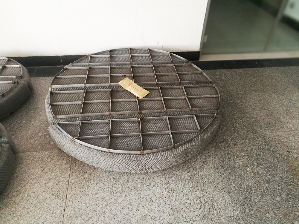 絲網(wǎng)除沫器主要是由絲網(wǎng)、絲網(wǎng)格柵組成絲網(wǎng)塊和固定絲網(wǎng)塊的支承裝置構(gòu)成,絲網(wǎng)為各種材質(zhì)的氣液過濾網(wǎng),氣液過濾網(wǎng)是由金屬絲或非金屬絲組成。氣液過濾網(wǎng)的非金屬絲由多股非金屬纖維捻制而成,亦可為單股非金屬絲。該絲網(wǎng)除沫器不但能濾除懸浮于氣流中的較大液沫,而且能濾除較小和微小液沫,廣泛應(yīng)用于化工、石油、塔器制造、壓力容器等行業(yè)中的氣液分離裝置中。